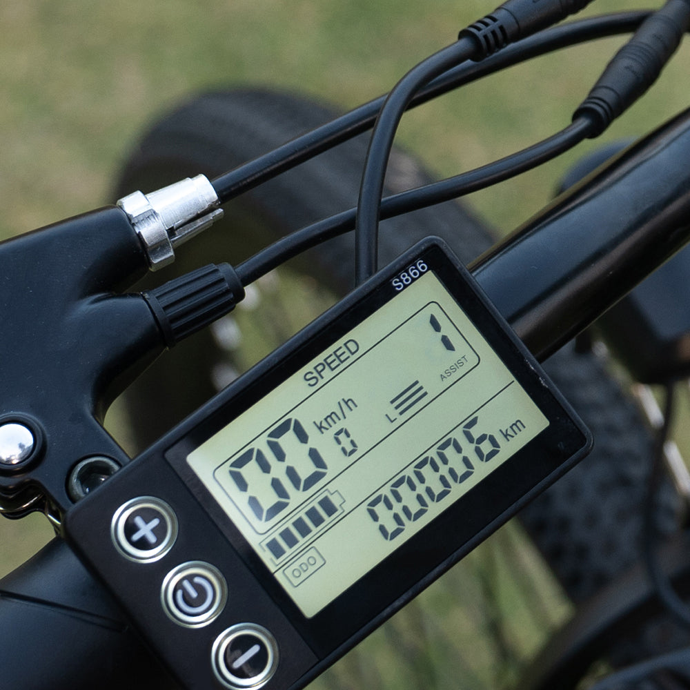 L'écran LCD affiche la vitesse en temps réel, la puissance de la batterie, le kilométrage et bien plus encore. Appuyez et maintenez enfoncé le bouton d'alimentation pour allumer l'écran. Rendez vos aventures en plein air et vos déplacements quotidiens plus agréables !